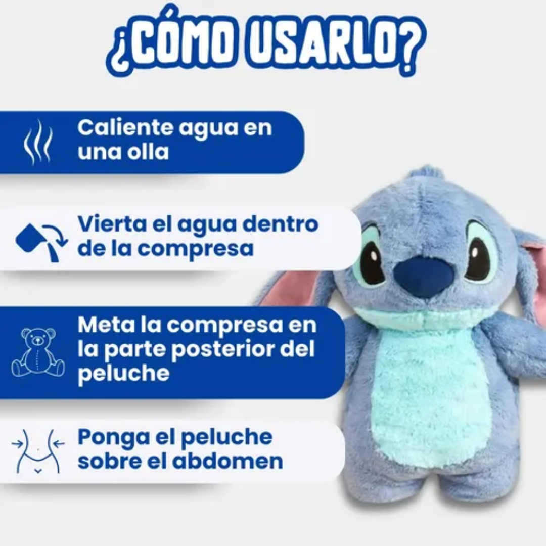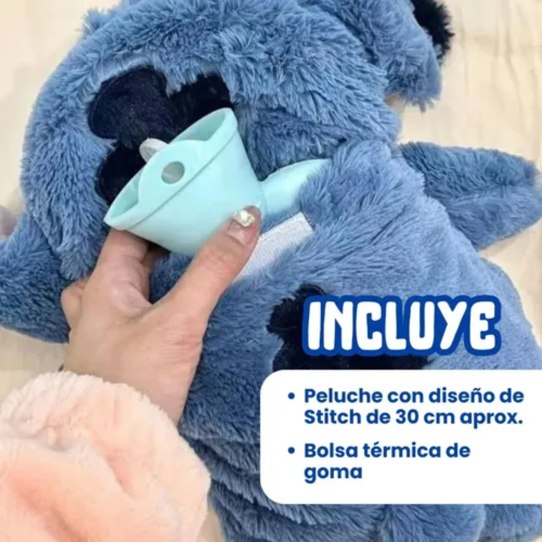 Disfruta una sensación de calor reconfortante y alivio inmediato con esta bolsa térmica de agua caliente con funda de peluche Stitch, diseñada para brindar comodidad, seguridad y un toque adorable en cada uso.